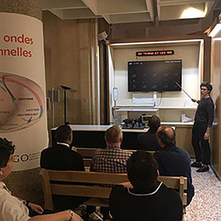 ESR Edouard Ivanov giving a talk on Gravitational Waves at the “Palais de la Découverte”