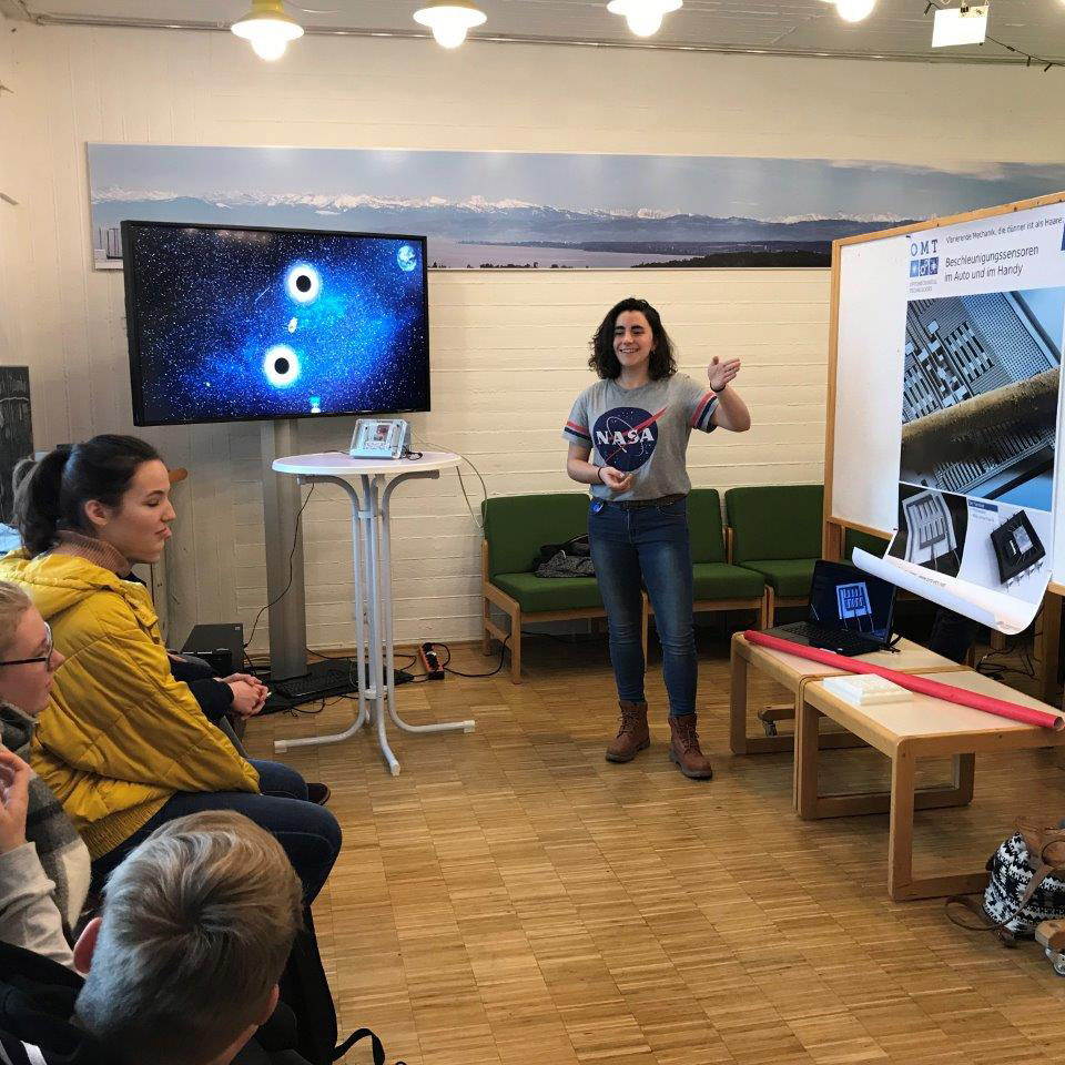 ESR Irene Sánchez Arribas presenting Save the Astronaut at UKON's Physics Day