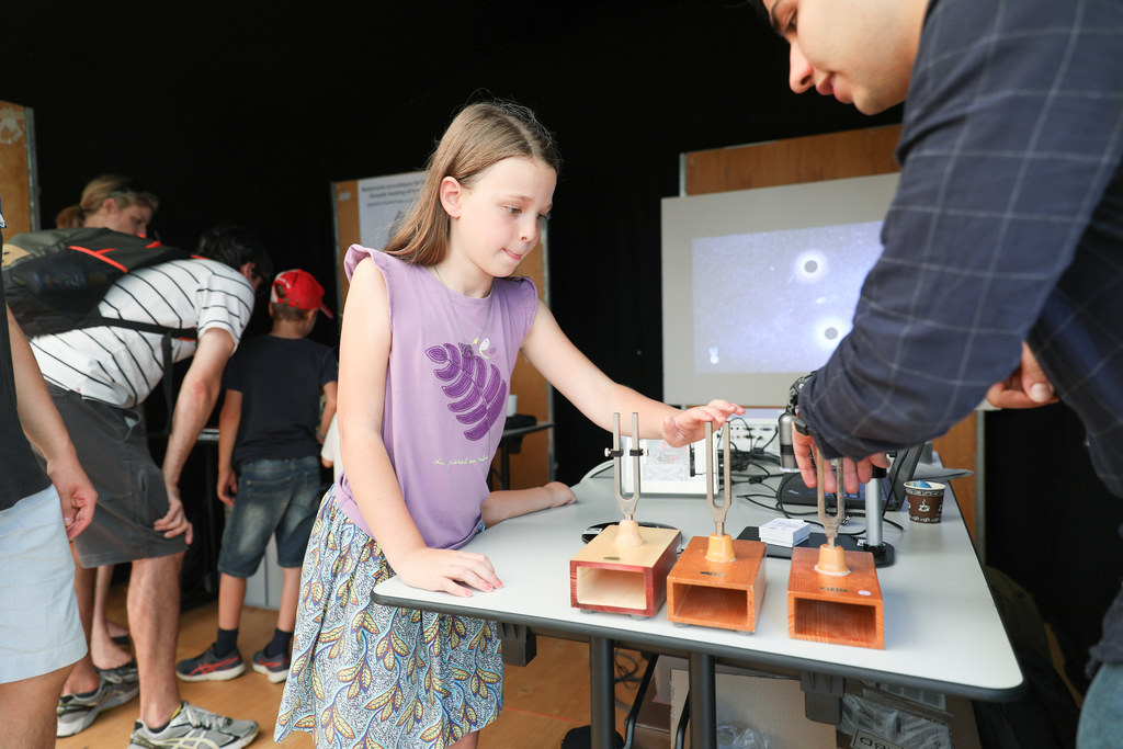 ESR Mohammad Bereyhi demnonstrating tuning forks at Nuits de la Science